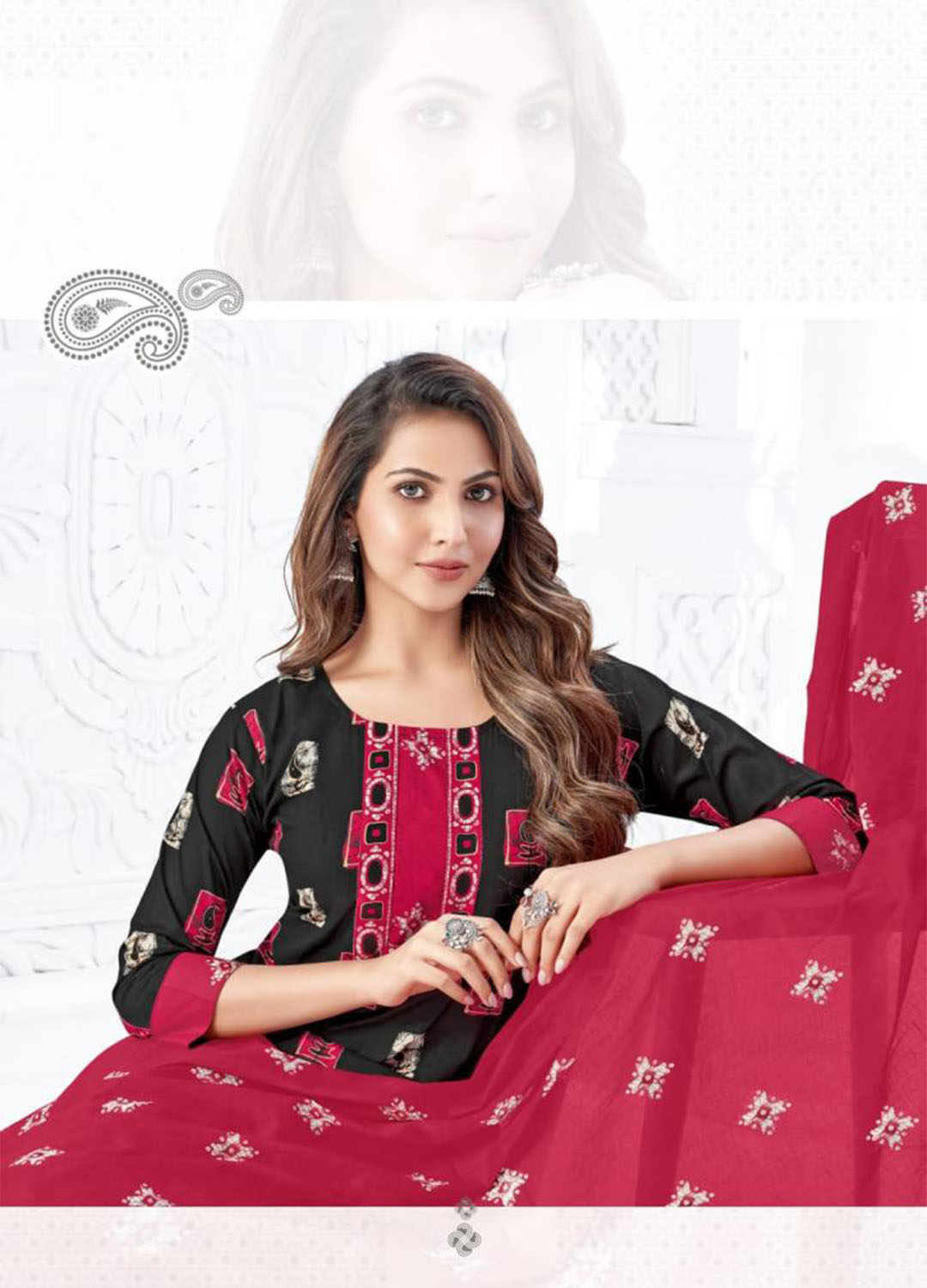 This stunning black and maroon cotton suit set blends bold colours with traditional motifs for an effortlessly elegant look. The straight-fit kurti features artistic block-style prints paired with a beautifully highlighted neckline and contrast sleeve cuffs. A matching maroon pant and soft dupatta with co-ordinating border detailing complete the outfit, giving it a perfectly balanced and polished appeal.