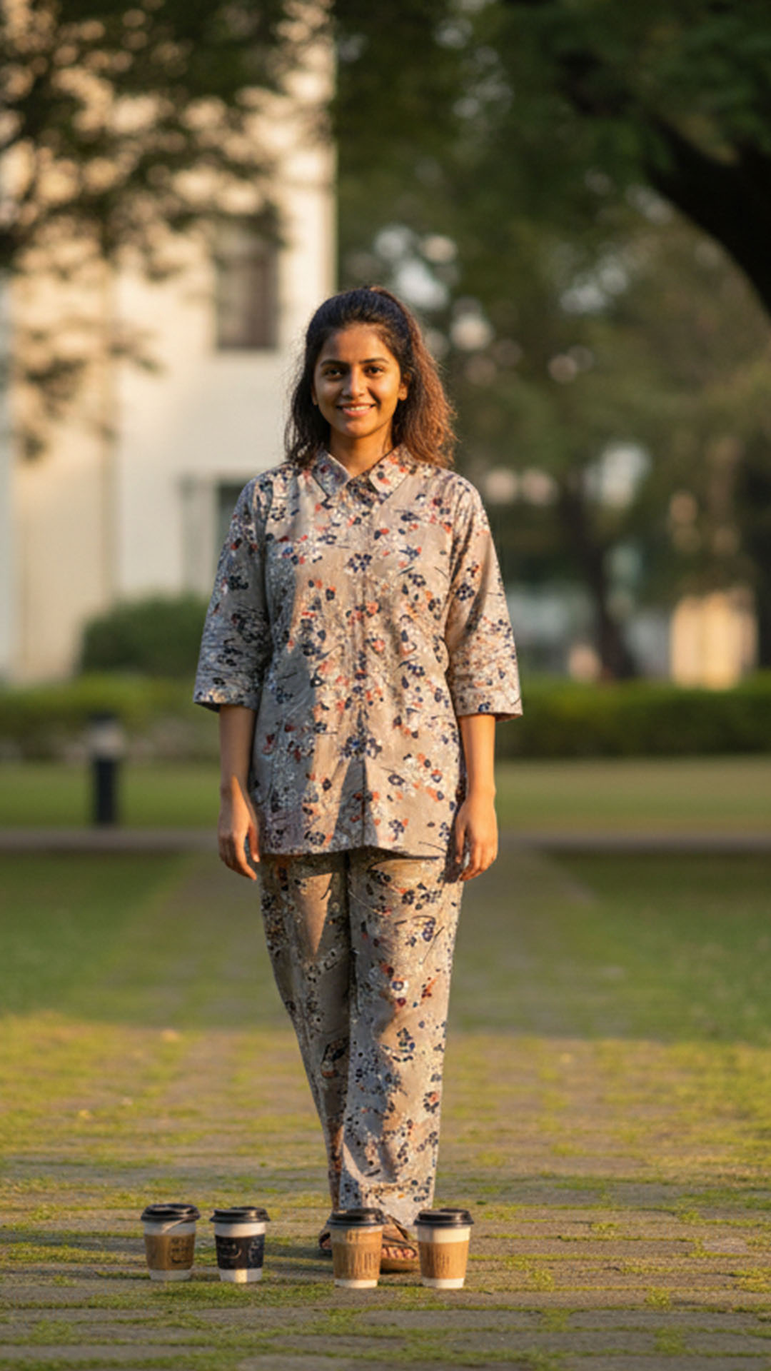 This elegant grey floral co-ord set is crafted from soft, breathable Liva-approved rayon, designed to keep you comfortable throughout the day. The delicate floral print in navy, white, and subtle rust tones adds a refined charm, making it suitable for both work and everyday wear. The coordinated top and pant create a balanced, effortless look that transitions smoothly from office hours to casual outings. Lightweight, flowy, and easy to style, this co-ord set is a versatile addition to any modern wardrobe.
