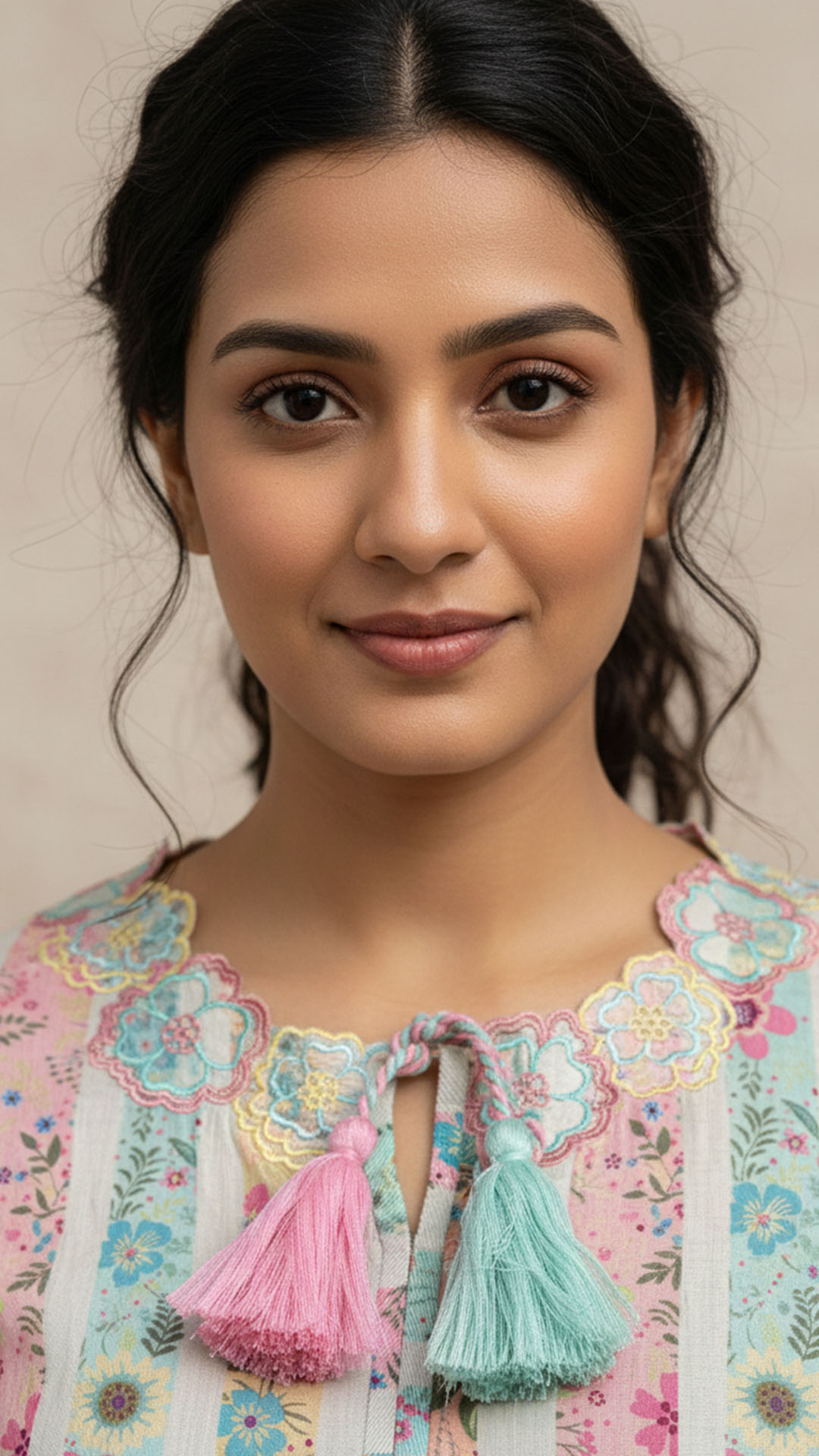 Neckline: Lace-Embroidered Neck with Dual Tassels