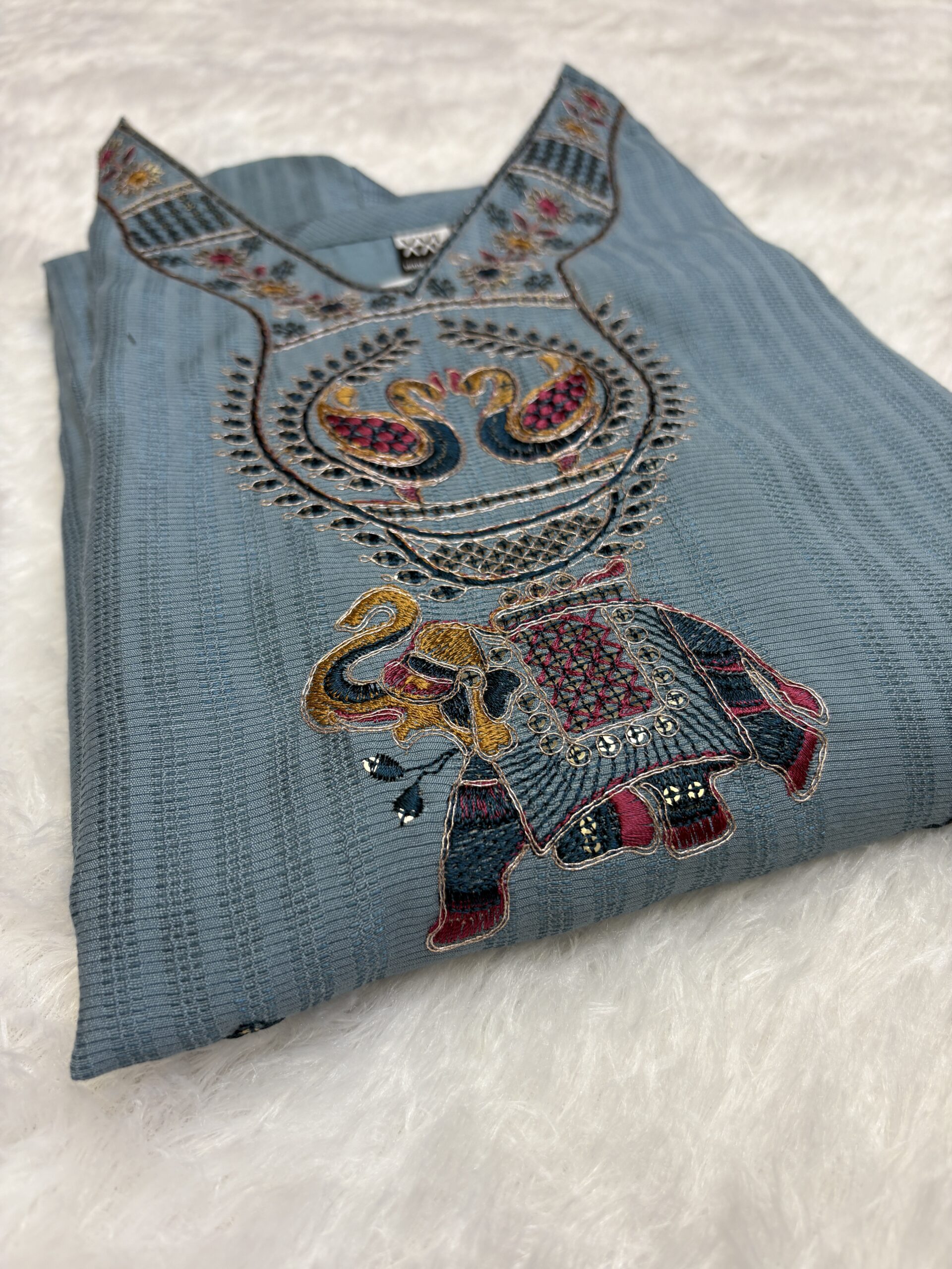 Pattern: Solid base with embroidered elephant motif & subtle bead detailing